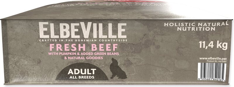 ELBEVILLE е естествена храна за общото здраве на вашето куче. Произведена е от най-добрите натурални, местни съставки, включително т.нар. супер храни и с високо съдържание на качествено прясно месо. Тази рецептура съдържа 35% прясно обезкостено говеждо и 26% хидратирано патица и пуйка.
