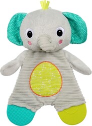 Текстилната книжка може да се закачи на количка, автомобилна седалка или на играчка с дъга. Има звукови бутони и шуршащи страници. Кутията с носни кърпички в ярки цветове насърчава децата да играят забавно, пълно с опипване и разпознаване на цветове. Безкрайното пускане, вдъхновено от Монтесори, ще помогне на децата да разберат, че предметите съществуват, дори когато не са видими. Дъвкалката с слонче има дървен пръстен, който ще упражни захвата и осезанието, а мекото силиконово слонче ще успокои венците. Въртящият се цилиндър има пет страни със огледалце и различни цветове, а вътре има топче, което ще забавлява децата със звука си.