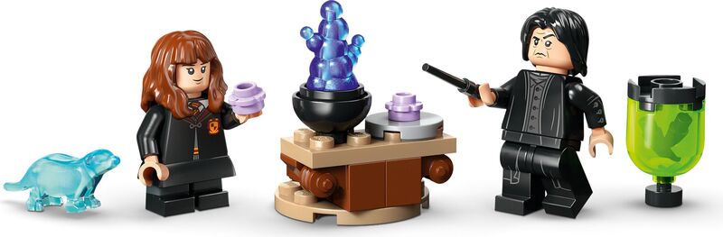 Преобразете урока по еликсири в Хогуортс с минифигурките на професор Снейп и Хърмиона Грейнджър. Потърсете също патронуса на Хърмиона под формата на видра, който е част от колекцията на патронусите по случай 25-годишнината на LEGO Harry Potter (в комплектите, които се продават отделно), и 1 от 14 колекционерски портрета от Хогуортс.