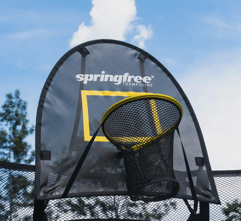 Skrytý rámOdolný pozinkovaný oceľový rám umiestnený mimo dosahu nebezpečenstva. Rám má tri vrstvy ochrany proti hrdzi, ktoré sa neolupujú. Navyše je umiestnený pod odrazovou plochou, kde je nemožné naň spadnúť. Bez ohľadu na to, ako tvrdo skákajúci dopadne alebo spadne, nikdy nedopadne na rám trampolíny Springfree®, čím sa eliminuje jedna z najväčších príčin zranení na trampolínach.
