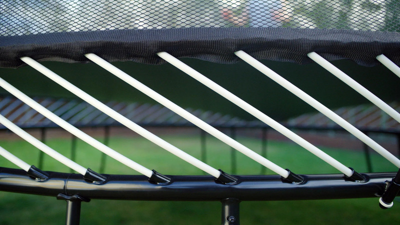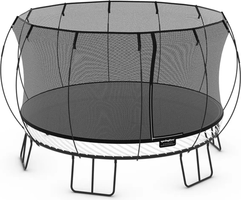 Odolný pozinkovaný oceľový rám umiestnený mimo dosahu nebezpečenstva. Rám má tri vrstvy ochrany proti hrdzi, ktoré sa neolupujú. Navyše je umiestnený pod odrazovou plochou, kde je nemožné naň spadnúť. Bez ohľadu na to, ako tvrdo skákajúci dopadne alebo spadne, nikdy nedopadne na rám trampolíny Springfree®, čím sa eliminuje jedna z najväčších príčin zranení na trampolínach.
