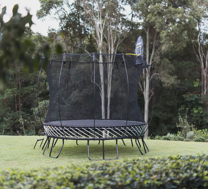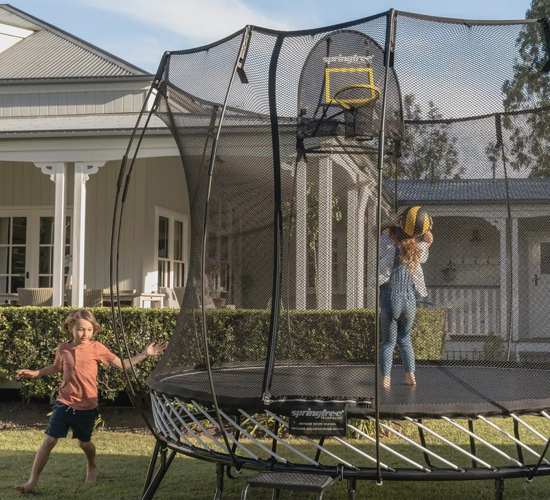 Odolný pozinkovaný oceľový rám umiestnený mimo dosahu nebezpečenstva. Rám má tri vrstvy ochrany proti hrdzi, ktoré sa neolupujú. Navyše je umiestnený pod odrazovou plochou, kde je nemožné naň spadnúť. Bez ohľadu na to, ako tvrdo skákajúci dopadne alebo spadne, nikdy nedopadne na rám trampolíny Springfree®, čím sa eliminuje jedna z najväčších príčin zranení na trampolínach.