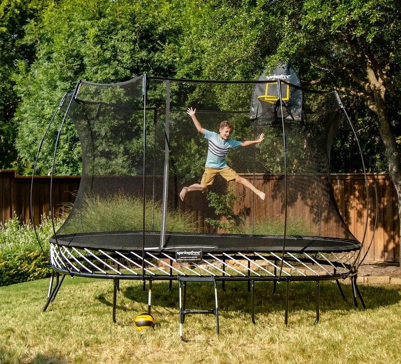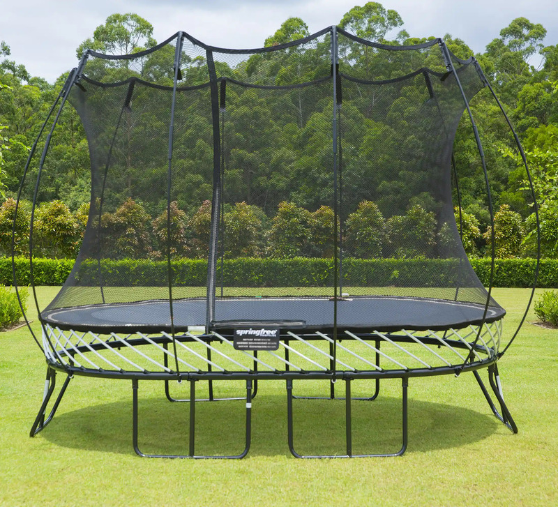 Odolný pozinkovaný oceľový rám umiestnený mimo dosahu nebezpečenstva. Rám má tri vrstvy ochrany proti hrdzi, ktoré sa neolupujú. Navyše je umiestnený pod odrazovou plochou, kde je nemožné naň spadnúť. Bez ohľadu na to, ako tvrdo skákajúci dopadne alebo spadne, nikdy nedopadne na rám trampolíny Springfree®, čím sa eliminuje jedna z najväčších príčin zranení na trampolínach.