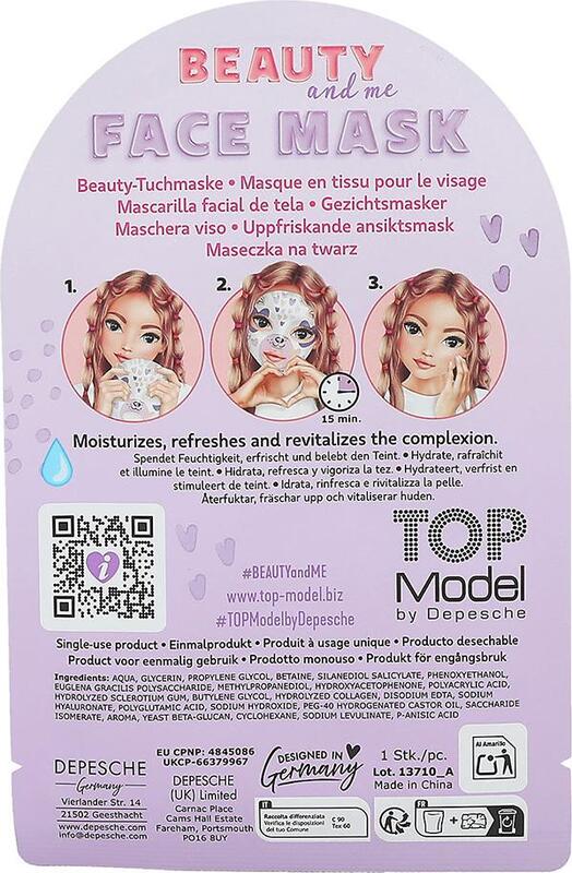 Опаковката съдържа 1 маска за еднократна употреба. Продуктът е част от дизайнерската серия TOPModel BEAUTY and ME и е подходящ за домашно лечение на кожата под наблюдението на възрастни.