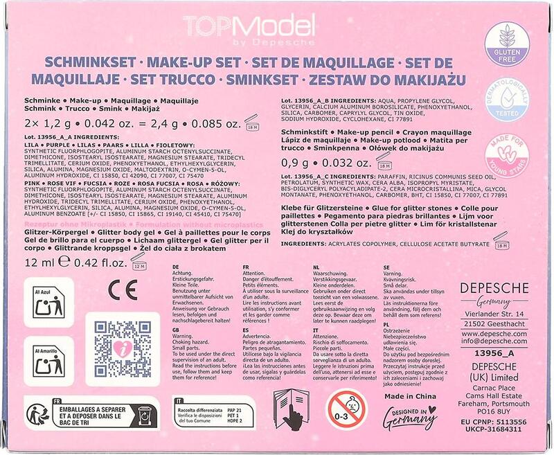 Темата Talita – детски козметичен комплект TOPModel съдържа грим, блестящ гел за тяло, декоративни камъчета и четки. Дерматологично тестван.
